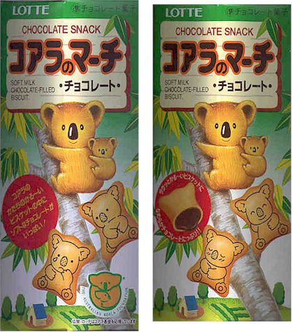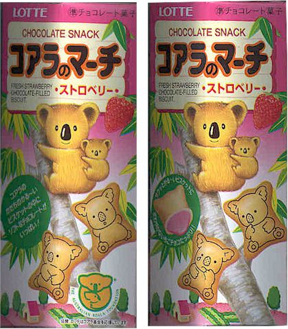 These are the best little cookies ever... They are a crispy koala shaped cookies, filled with a yummie soft chocolate... they come in either chocolate or strawberry flavor. I have a bunch of scanned images of these cute little cookies.. %d mmmmBoxes: