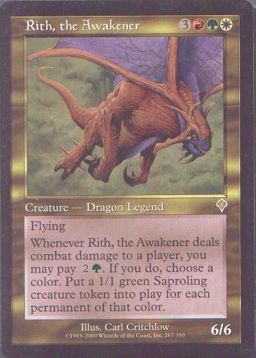 This was the last deck I ever made, only actually played it a couple times, and never got the hang of using it... probably because it sucks just as much as the rest of my decks. Anyway, the dragons are kewl so I made this Rith Saproling deck, and multicolor was in so I thought I'd try it out.