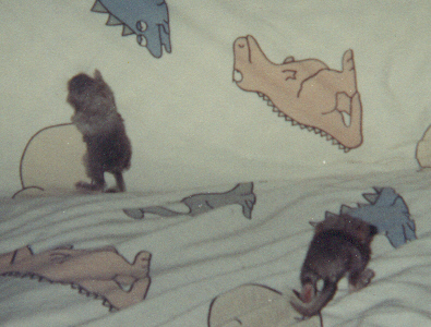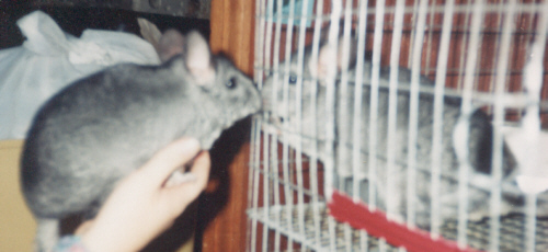 Unfortunately I decided to move out when I moved out in early 2000 I was unable to take my babies, Merlynn and Dweezle, with me. My family has been taking care of them ever since. Soon after I moved out I got news from my sister that "Bubba" had babies. Wow! Apparently the large chinchilla "Bubba" turned out to be a female, and had been living with a male, Chimpy, for quite some time.