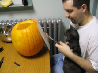 These are the pictures we took while carving and finishing our pumpkins on 10-25-04.