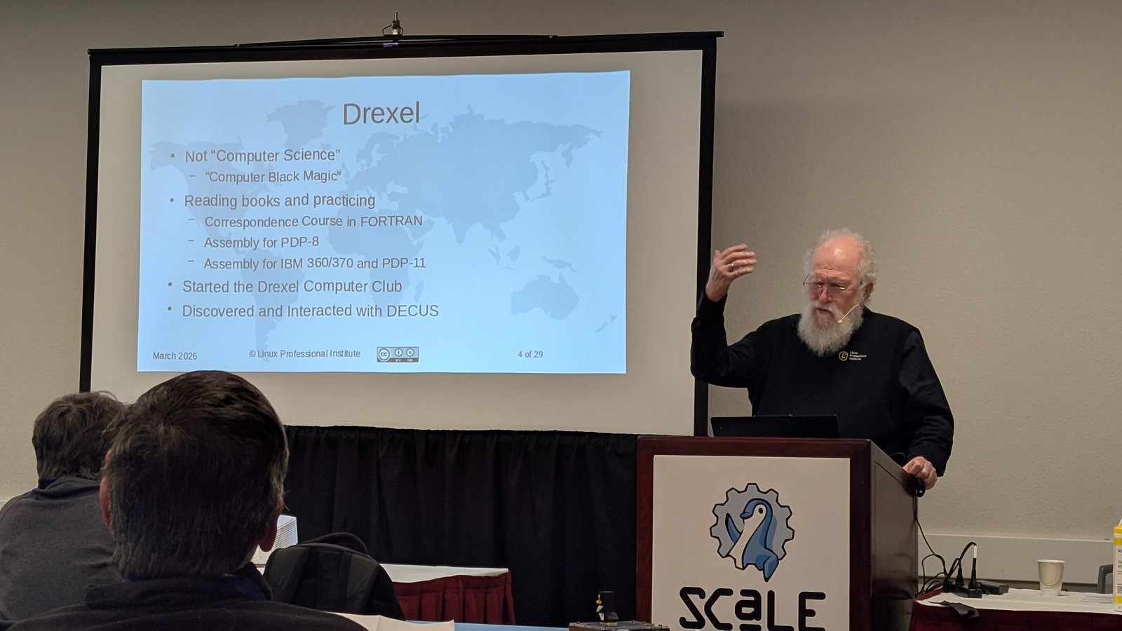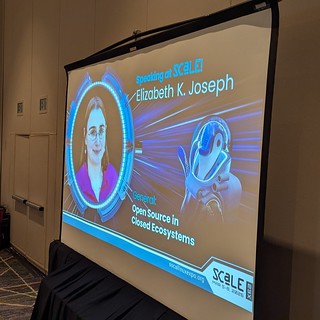 The talk had some rough edges flow-wise, and I’d like to flesh it out with more examples and talk to more people in industries where open source hasn’t taken a firm hold yet to see what barriers they’re encountering in their organizations. But I had some great conversations after my talk and I think it generally went well. Slides from the talk are available here: /presentations/2026/Open_Source_in_Closed_Ecosystems_-_SCALE_23x.pdf (1.3M pdf)