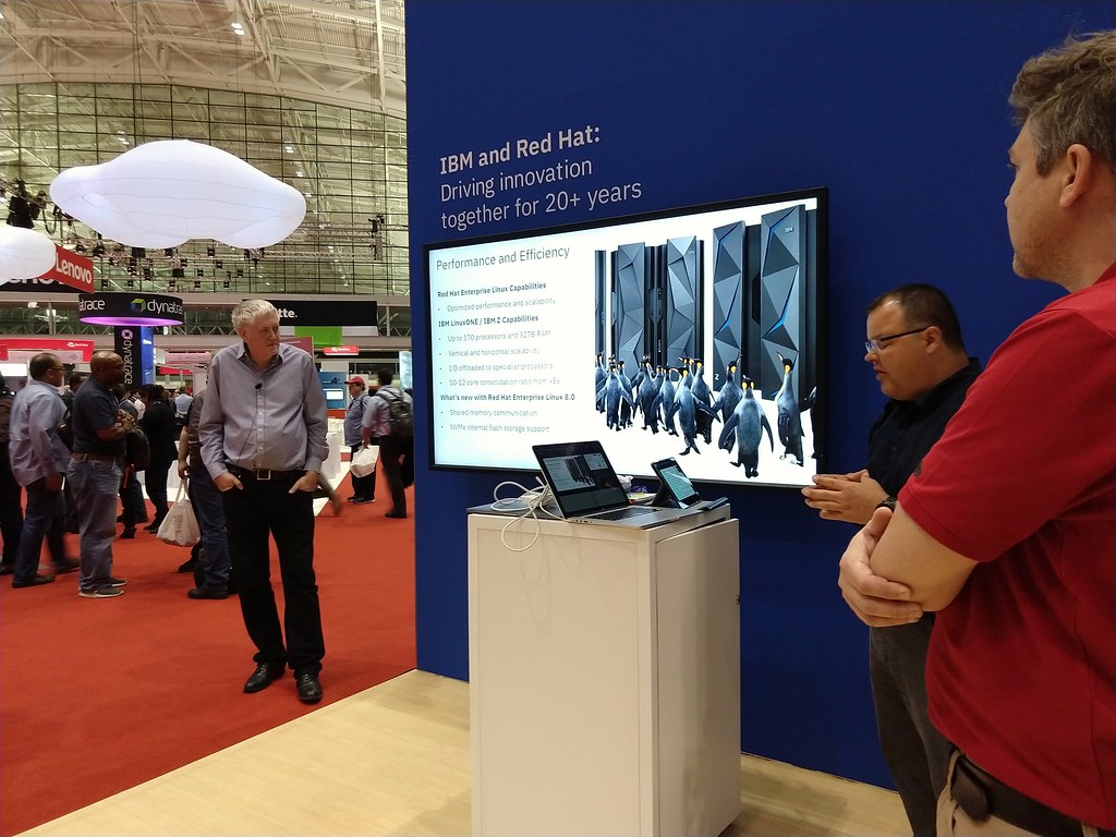 While on booth duty, I learned about the LinuxONE Community Cloud and had great chats with the fellow who runs it. I got to read LinuxONE for Dummies back at my room the first evening so I could re-join the booth the next morning equipped with enough knowledge to be useful (or dangerous!), so it was fun to chat with folks who were interested in learning more about what LinuxONE is.