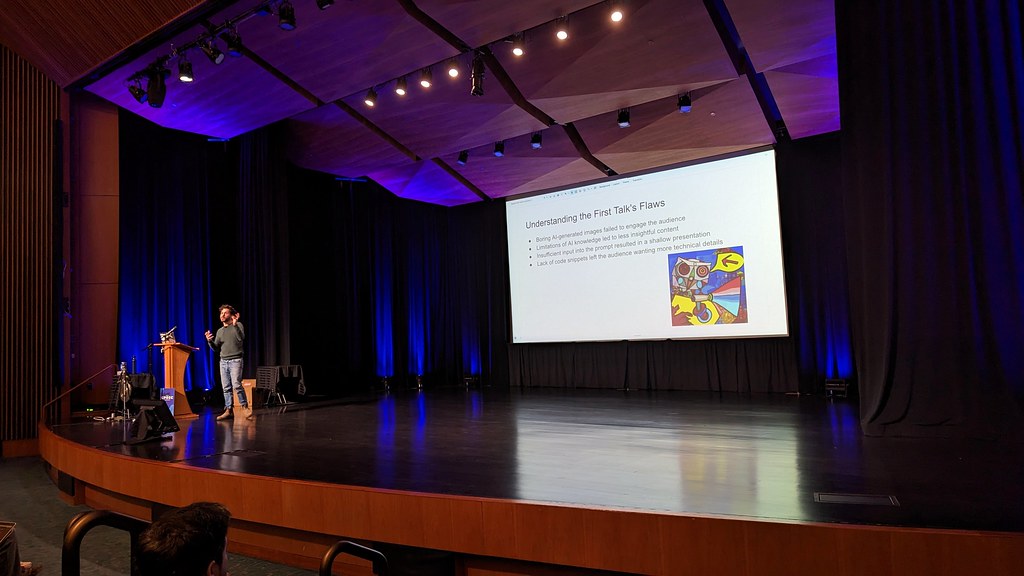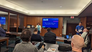 If I had to say there was a them to my afternoon, it was AI. The first talk after lunch was “An AI Wrote This Talk” by Tom Swartz and it was an incredibly entertaining romp through the power, and shortcomings of ChatGPT and other LLM technologies out there, for now. We still need human intervention to truly make something engaging that connects to people, but how far are we away from a world where it’s not? This dovetailed nicely with the final talk of the day, from Richard Everts, on “What is Really Happening Right Now With AI”. Want to be scared a bit? I joked that it wouldn’t be an open source conference without a scary AI talk, and while he did have some bright spots, the general tone of the talk was a bit dystopian. There are some real concerns out there about the rapid progression of machine learning technologies. We may not have to worry about robots for a while, but deep fakes are already altering our perception of the world, and there really is no closing Pandora’s Box. In more localized concerns, routine programming tasks may be very well suited to AI, so our expertise in the technology realm may be going up a rung on the ladder. But I thought about this a lot on my train ride home, hasn’t this always been the case? As our tools and hardware advance, so do we. None of us are swapping out vacuum tubes or writing code for punched cards anymore. Plus, with every advance in technology, we’re able to do so much more! The folks breaking codes with early computers in WWII couldn’t dream of what would be happening in the world of computing just half a century later, let alone now. When we free up the humans from doing tedious tasks and offload that to computers, that allows us to focus on more interesting, complex problems. I wouldn’t say I’m an eternal optimist, but at the same time it’s nice for talks like this to knock some perspective into me every once in a while. Still, I’m going to cling to the positive in this case, because doing otherwise leads to a dark future that I’d struggle to live with.