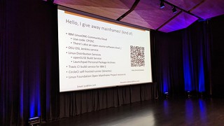 The last part of the actual conference was the round of lightning talks, it was my time to hop up on stage! Admittedly, I’d been talking about mainframes to anyone who would listen all day, but the big stage was a nice chance to get spiel out to everyone who stayed long enough for them. Plus, I got to use a few moments of my talk time to gush about coming back to CPOSC after over a decade.