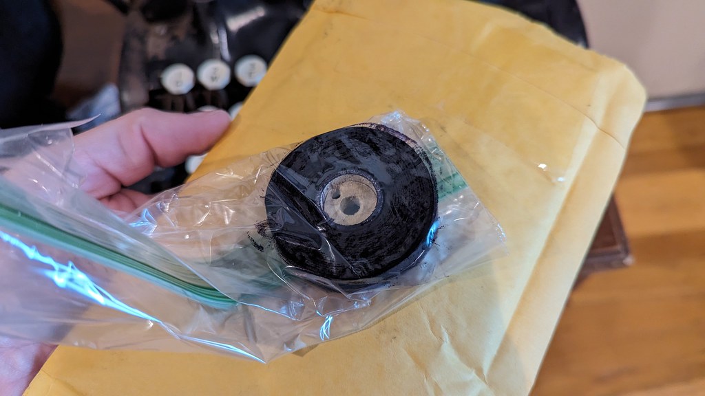 Next up was ordering a ribbon! It was back to our friend at The Vintage Type, since he sells ribbons on eBay. Since I had both my original spools, I could get away with just ordering a single spooled ribbon, and a few days later I had the ribbon in-hand. And then it took me a couple weeks to finally carve out some evening time to install it, because life gets in the way.