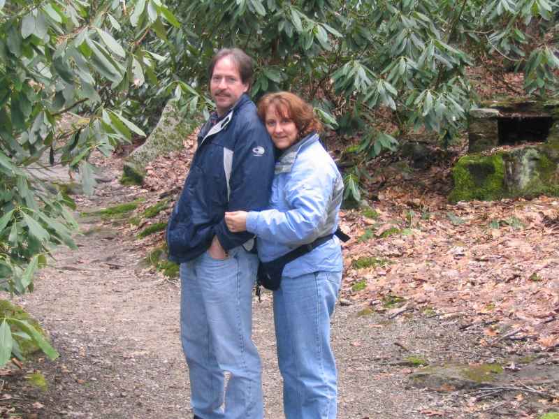 ![]() Saturday, March 26, 2005 - Morning In the morning we woke up to a delicious breakfast of fruit, then a ham and cheese quiche. While eating breakfast we sketched out our plans for the day. Decided to go to Cathedral State Park in the morning, and swing up to Falling Waters for a tour in the late afternoon. The weather here in Maryland was quite foggy and damp, but thankfully not raining. When we got into Frostburg (only about 3 miles from The Castle) we saw snow on all the cars, it looked like they got about half an inch over the night! The drive out to Cathedral took a little over an hour, and once we got there we were instantly disappointed, the big attraction there was the "Centennial Hemlock" and it had fallen down! Further exploration of the immediate area disappointed us further, the ground was muddy, there was snow piled up in places (sometimes blocking the trail), and the restrooms were all locked. We decided to head to Blackwater Falls instead. After getting a little lost (per my directions, oops) we made it to Blackwater Falls around 1pm. There was a bunch of people there. We walked down the wooden walkway to see the falls, only to discover that the bottom half of the walkway was closed! There was snow and ice all over it. Plus, there were people standing there smoking, kids running around screaming and throwing snowballs. Yuck. Michael got a bit annoyed at it all and walked back up to the car, we soon followed. In the car we talked for a bit about where to go next. We had plans at Falling Waters, but decided to skip that and try again for somewhere to hike. Michael had mentioned Audra State Park in West Virginia, and I had originally dismissed it because of the distance (over 2 hours from where we were staying), but we were pretty disappointed with the day thus far and decided to go anyway. The trip there took us down a whole lot of windy roads, up and down mountains, and as soon as we got through that the clouds parted and the sun came out. "I made the right choice," Michael said, grinning. I took this just to mean he'd finally get his nice hiking trip in, little did I know what he had planned! We arrived at Audra around 2:30, all climbed out of the car and headed toward a trail that Michael thought looked promising (he was looking for a specific trail he'd been on before and really enjoyed). It was everything he said it would be, and with the sun out, the day was turning out even better than I had expected. The trail was slippery, and on one particularly damp part where the ice was melting and dripping over everything, a rock came loose and caused Michael to lose his footing and slip. He was fine, albeit him and the camera were a little muddy, and hopped up quickly enough. I grabbed some tissues from the backpack and we were busy cleaning up the mud when Barry was called him to check out a nice spot he had found, I didn't think anything of it. << Friday, March 25, 2005 | Main | Saturday, March 26, 2005 - The Proposal >> |